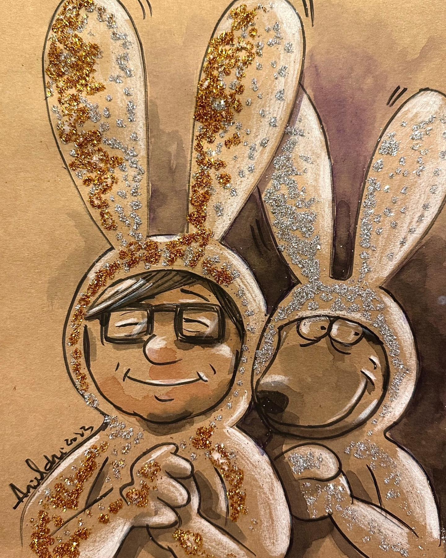Chen’s earliest image in his now iconic style (left) and a depiction of him and his dog Yongge (right). Photo credit: Chen Shui-bian/Instagram/Facebook